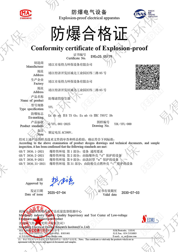 YFL濾筒防爆除塵器